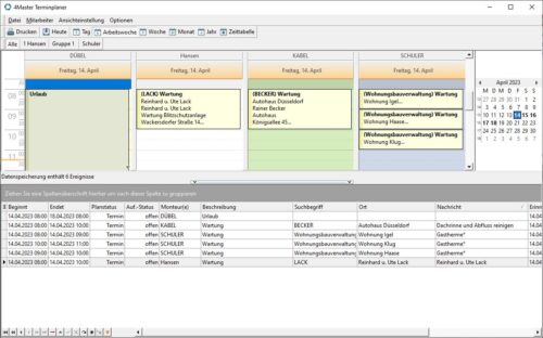 Sie können nun die Termine im Terminplaner bearbeiten, verschieben oder einem anderen Monteur zuordnen.