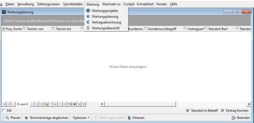 Wartungsprojekte müssen mit Standorten, Anlagen und Verträgen angelegt werden um sie dann zur intervallmäßigen Planung zu nutzen.