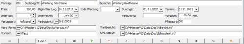Mit einem Vertragsformular (rtf-Word-Datei) kann für die Anlage ein Wartungsvertrag ausgegeben werden.