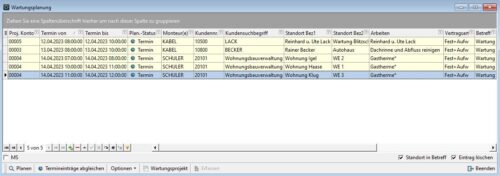 In der Wartungsplanung werden die Kundentermine erzeugt und geplant.